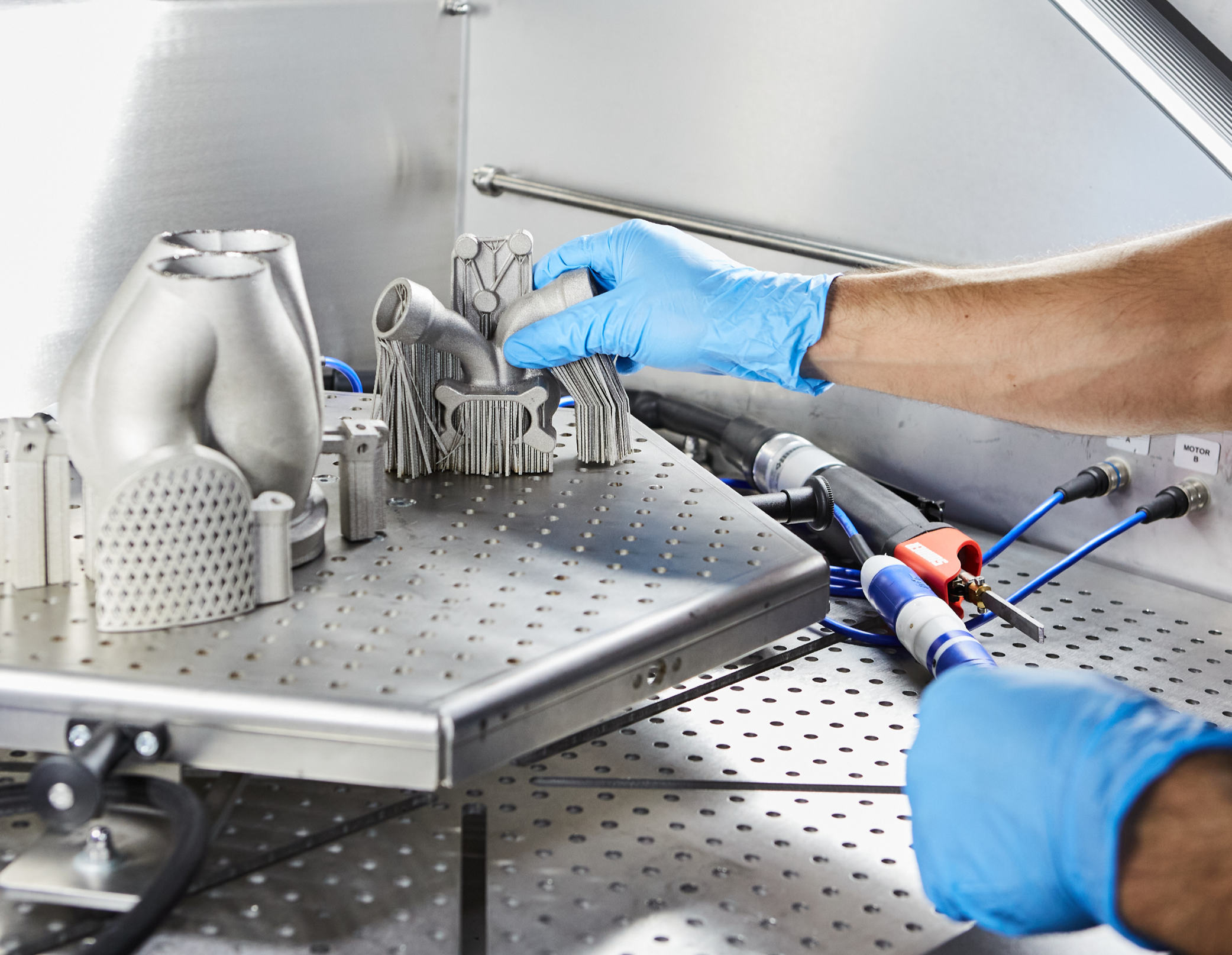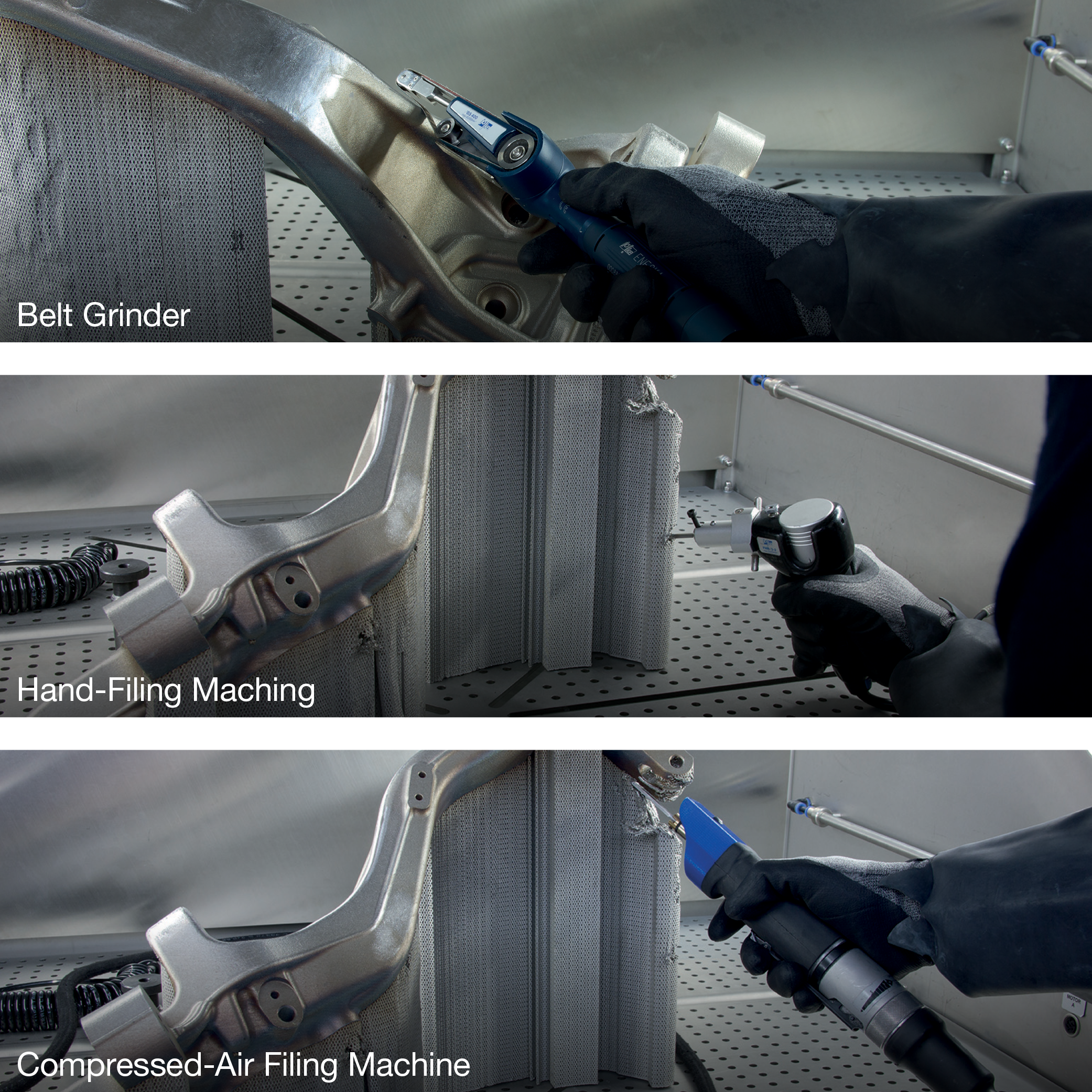 With built-in connections for many tools and larger hand inlets, the work station can be used for a wide range of post-processing tasks such as support and substrate removal, grinding, deburring, and polishing.