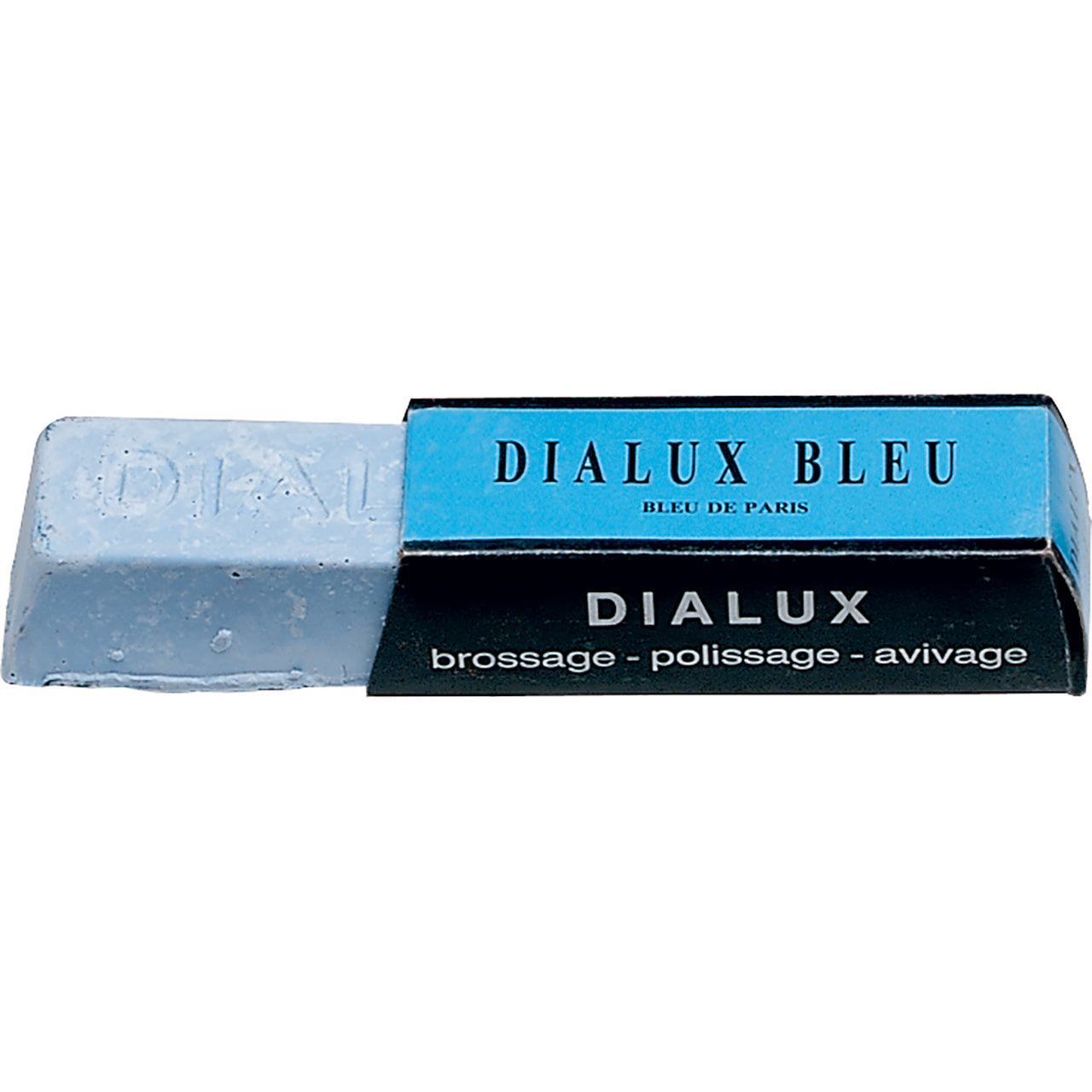 The Bleu (Blue) Dialux® premium polishing compound is generally used as an all-purpose compound for all types of metals.  Made from select abrasive grades uniformly blended and manufactured under the strictest quality controls. Adhere exceptionally well to buffs, brushes and felts, so very little is needed which helps reduce cleanup and save time. Individually packaged in color-coded cardboard boxes for cleaner handling. Each box measures 3-5/8"L x 1-1/8"W x 1"H and weighs approximately 4 ounces.  Imported from Europe.Â