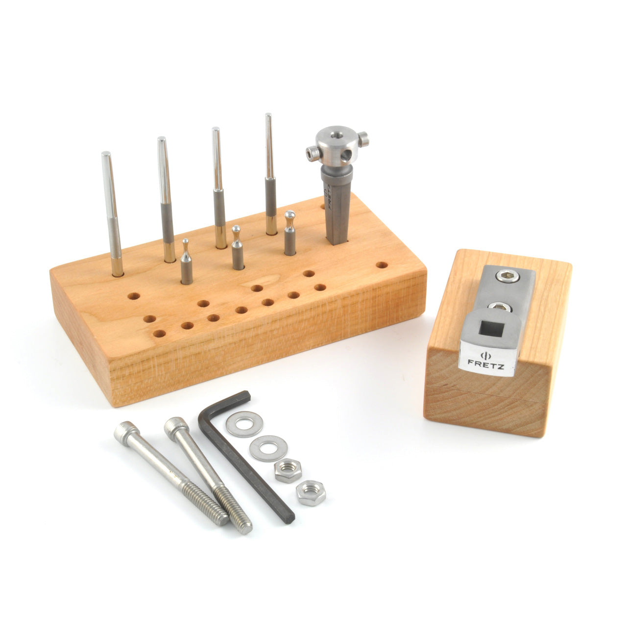This H-2 Micro Stake Set from Fretz includes four Micro Mandrels for forming incredibly tight curves and three Micro Mushroom Stakes for doming bezels. The Stake Holder and Vice Block ensure the stake stays still, so you can use one hand to hold your project and the other to hammer. All Fretz miniature stakes are made from hardened 420 stainless steel that have been given a high polish making them robust and beautiful while protecting your workpieces from scratches. Made in Vietnam.