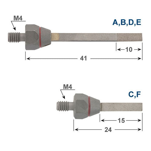 Precision-graded diamond particles throughout, not just on the surface, give these tools long life. Can be shaped with a diamond file for easy polishing of tapered or deep, narrow slots. Great for intermediate and fine finishing.