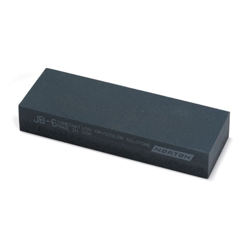 All Crystolon Stones are made of silicon carbide electric furnace abrasive. Electric furnace stones are made by ball-milling the abrasive to the correct particle size, then batch-blending with carefully selected bonding agents to produce the precise characteristics desired in the finishing stone. This produces a fast-cutting abrasive which is harder than any natural abrasive except diamond and does an outstanding job where moderate tolerances are desired. The resulting tool edge lacks durability as compared to India. Crystolon is the choice when speed of sharpening is more important than fineness of the cutting edge. Dark gray in color. Stone measures 6"L x 2"W x 1"H. Made in Mexico.