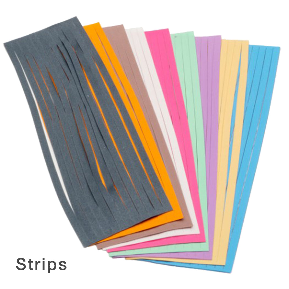 Slurry coated polishing strips are strong and durable and a must for any bench jeweler. Made of Rayon and unique proprietary backing material that sets them apart from traditional polishing paper, and results in a consistent uniform finish. The blend of various types of Micron particle minerals is applied to each strip in a slurry coating process along with the abrasive Silicon Carbide. The Micron grading technique produces particles of the same size and shape to achieve a consistent finish every time. The Slurry Coated Strips are perfect for hard-to-reach places and provide consistent results. Use them by hand or in your favorite saw frame. Ideal for wet or dry applications. Available in 9 colors for easy identification of the grits (see below). The Strips come in a convenient assortment pack of all 9 colors/grits. Each pack includes 2 sheets per color/grit, overall size 1-7/8”W X 7”L and each sheet contains 12 pre-cut strips (5/32”W X 7”L) for a total of 216 strips. Made in China