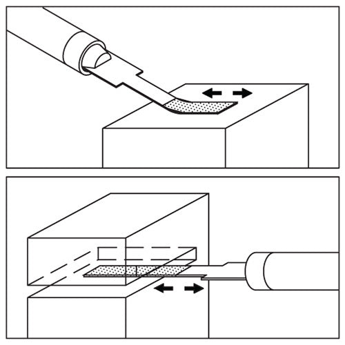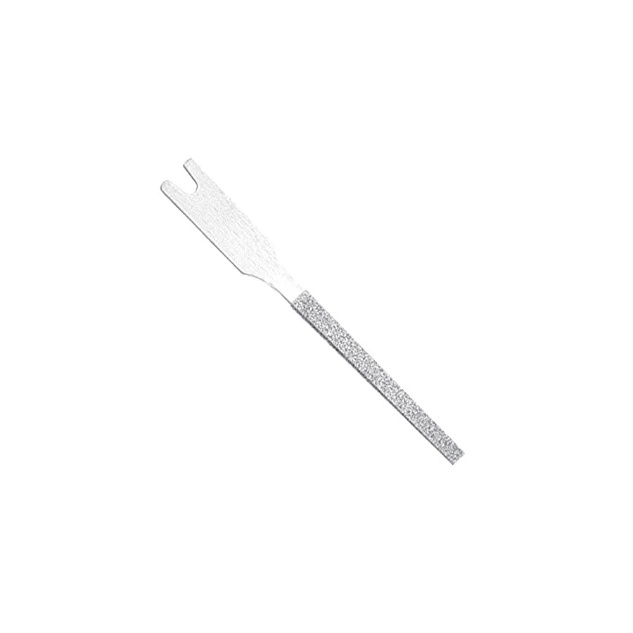 Designed for use with Turbo Air Lappers and UHT Ushio Turbolaps. These diamond files are perfect for finishing in tight areas. The U-shape feature locks the file into the tool holder for our Turbo Air Lappers. The high quality diamond abrasive performs well in high speed and short stroke applications. Can also be used by hand with the Diamond File Holder (241-0684). Each diamond file has maximum thickness of 1mm and tapers down to 0.5mm thick. Made in Taiwan.
